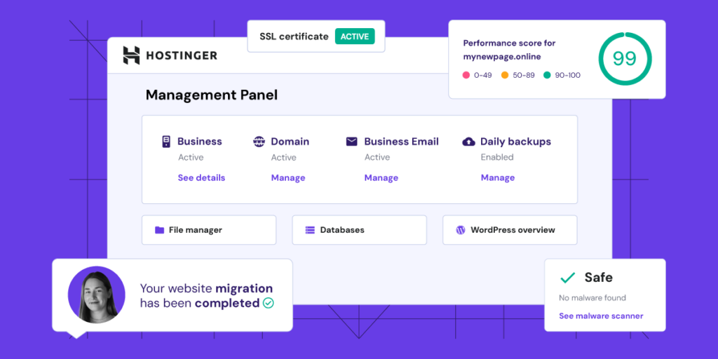 Most beginners need a domain name and security for their site. Hostinger offers free domain registration and an SSL certificate with most plans, saving you extra costs.
